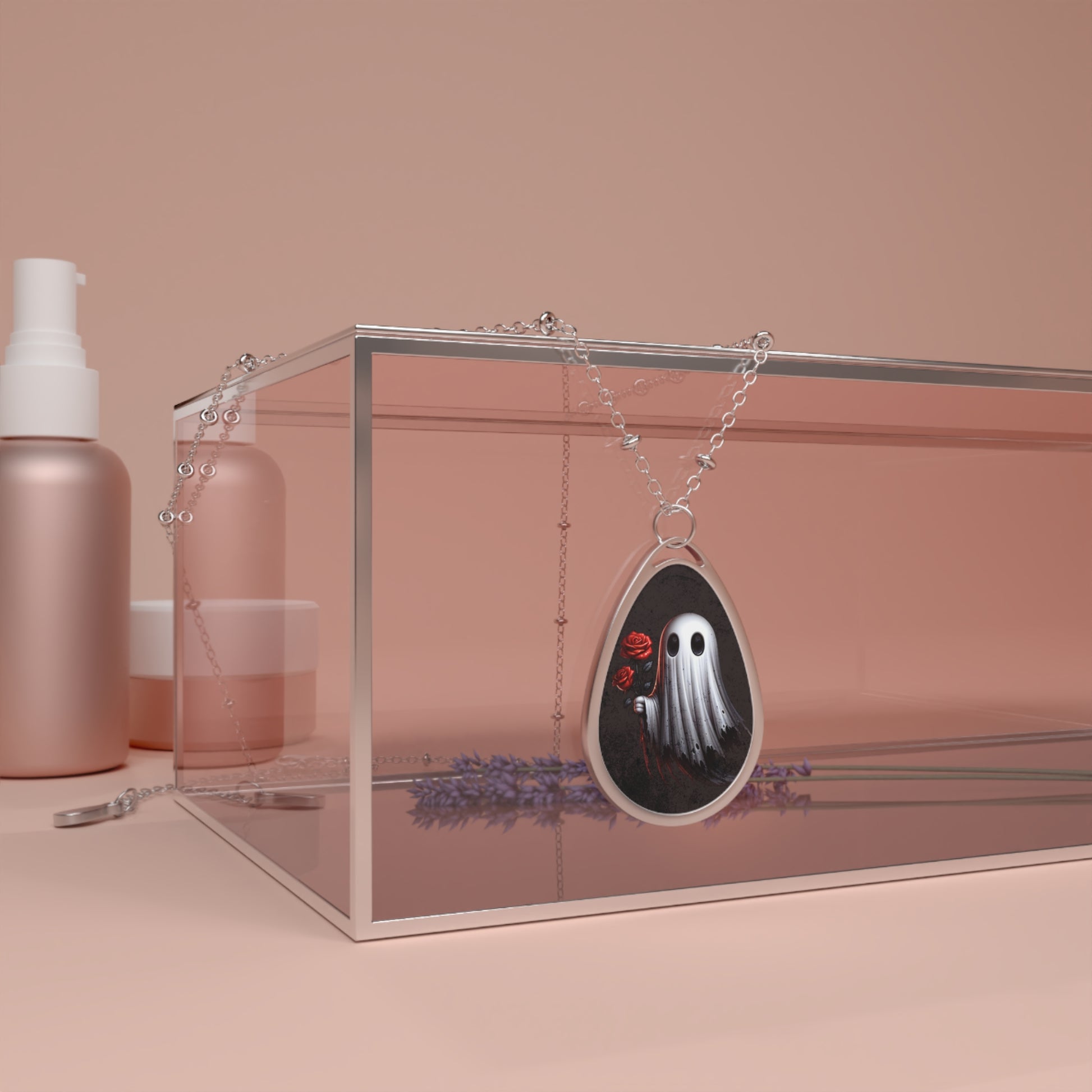 Gothic Ghost Friends... Add a custom touch to what you're wearing. Made with a robust zinc alloy for dazzling looks that are long-lasting. The print panel is made with aluminum while the pendant itself comes in a unique shape of an ellipse.