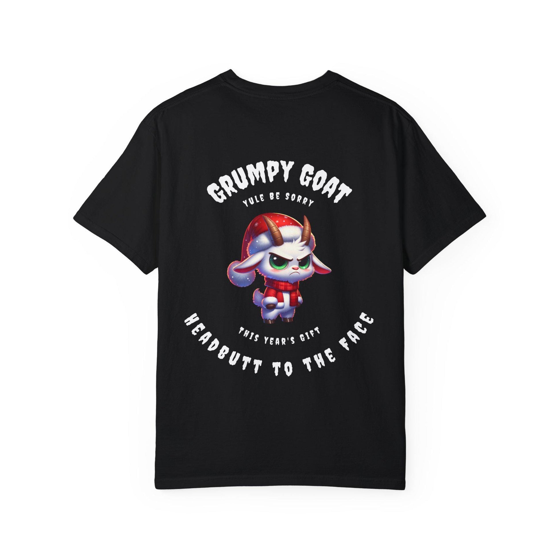 A Grumpy Goat Holiday T-shirt that exudes a playful and festive vibe, perfect for fans of goats, holiday enthusiasts, and those that are just grumpy. This comfortable and versatile tee is ideal for casual wear or as a statement piece during the holiday season.