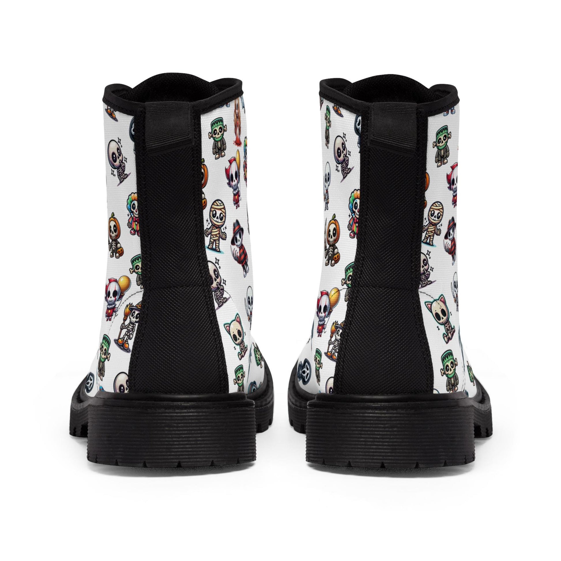 These Women's Canvas Boots are perfect for Halloween with their cute skeleton friends in slasher and creeper costumes. They give off a spooky and fun vibe, making them great for a Trick or Treat costume or adding a creepy touch to your outfit. The soft foam insole and fine weave texture fabric make them super comfortable to wear. Relevant for Halloween celebrations and costume parties.