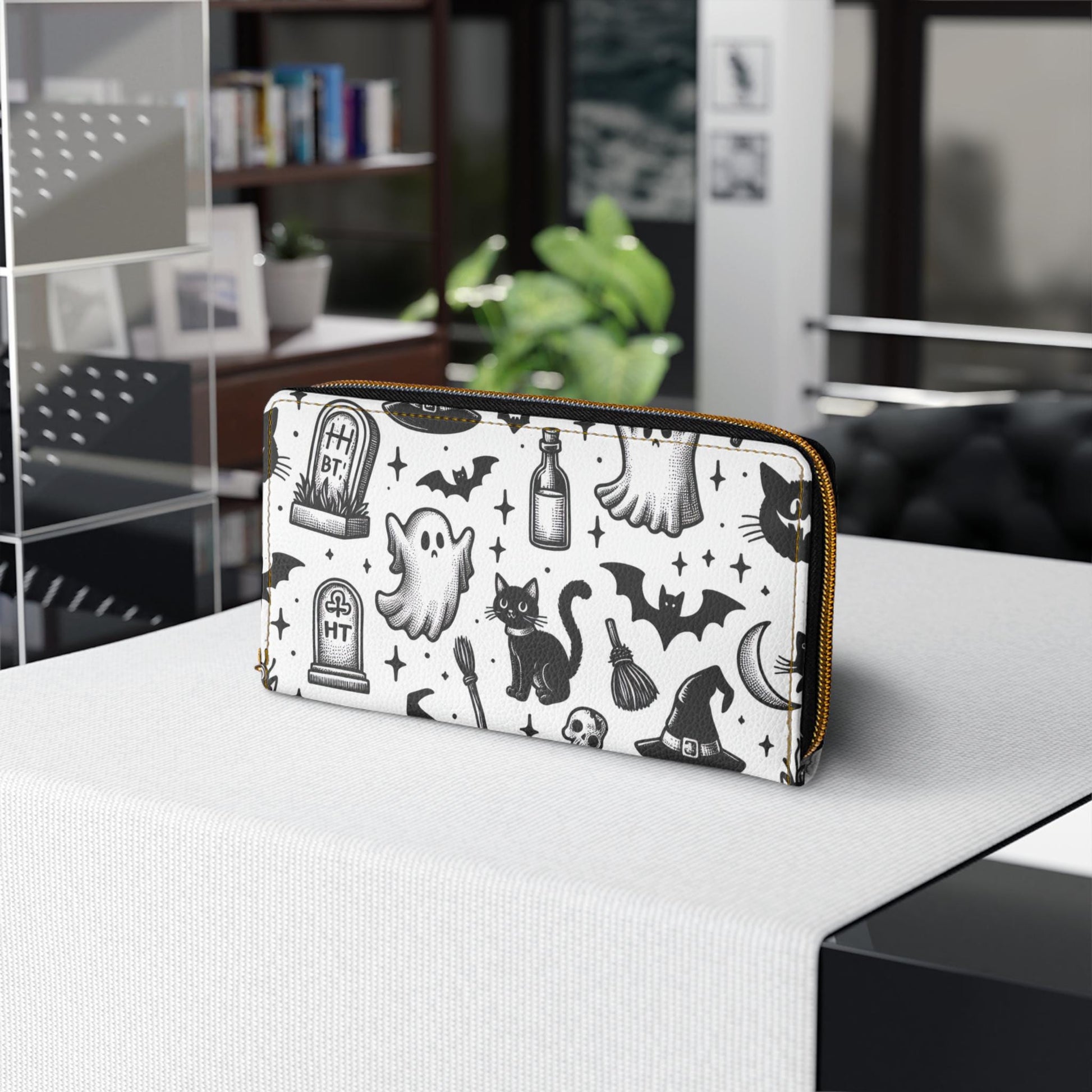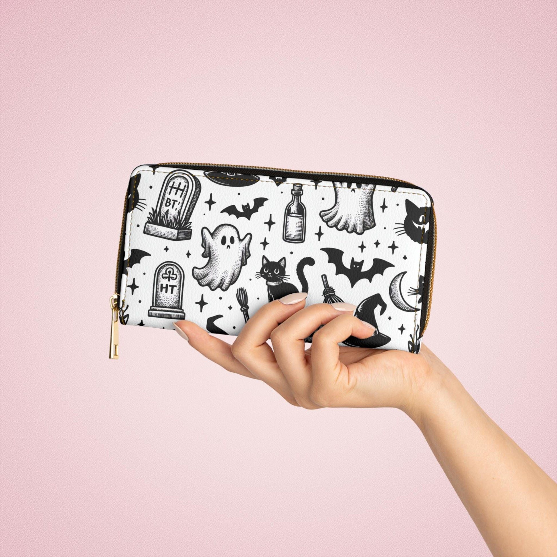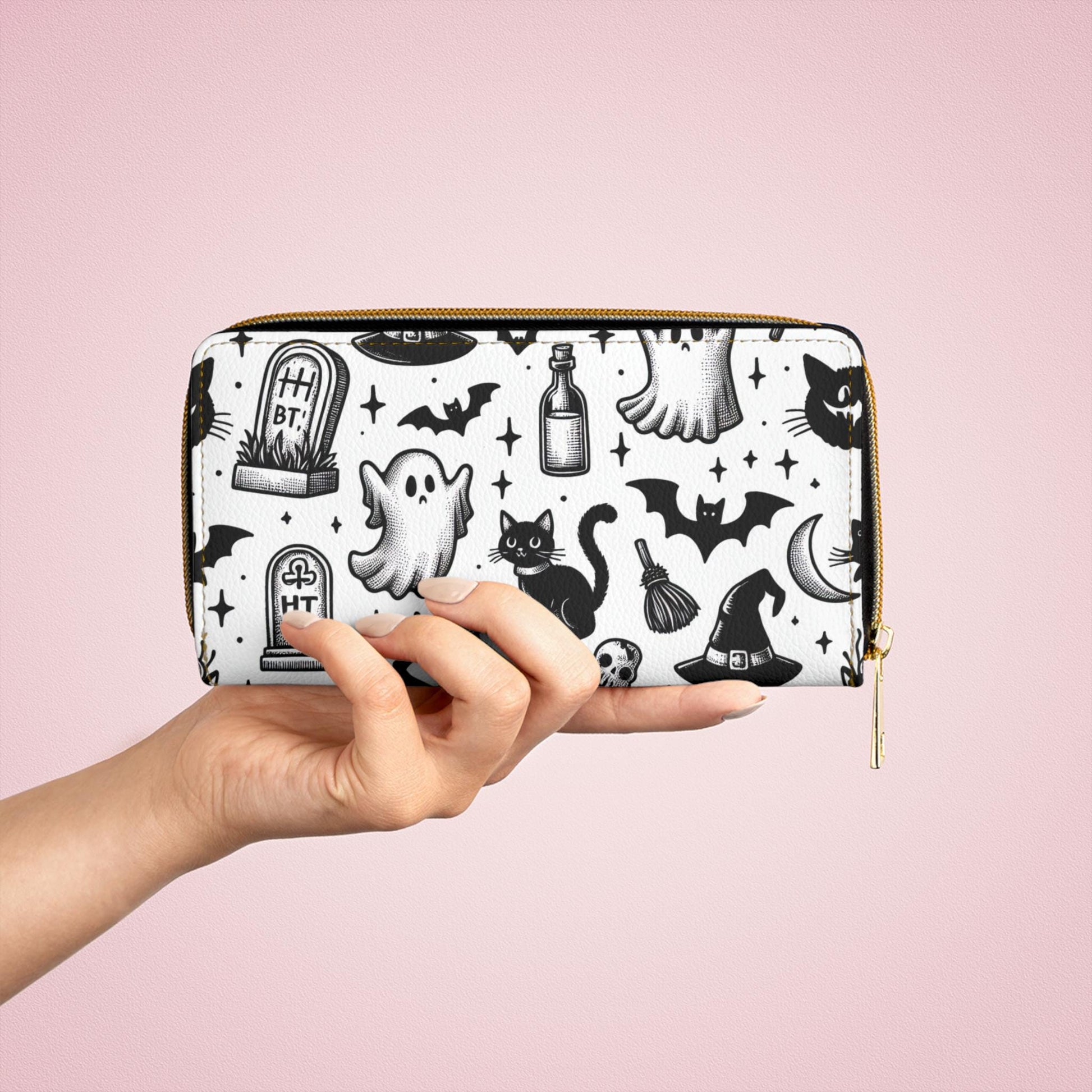 Zipper Wallet, Ghostly Spooky Coin Purse Pouch, Haunted Halloween Card Holder, Scary Phantom Money Organizer, Creepy Specter ID Wallet